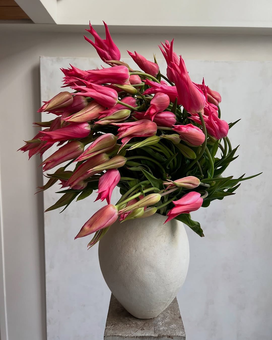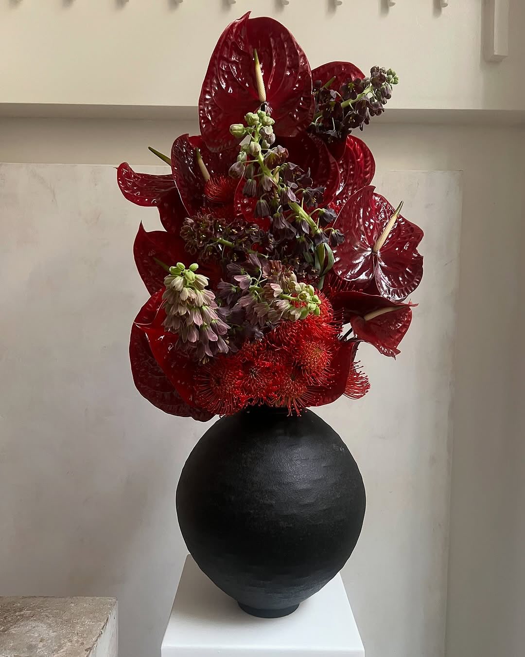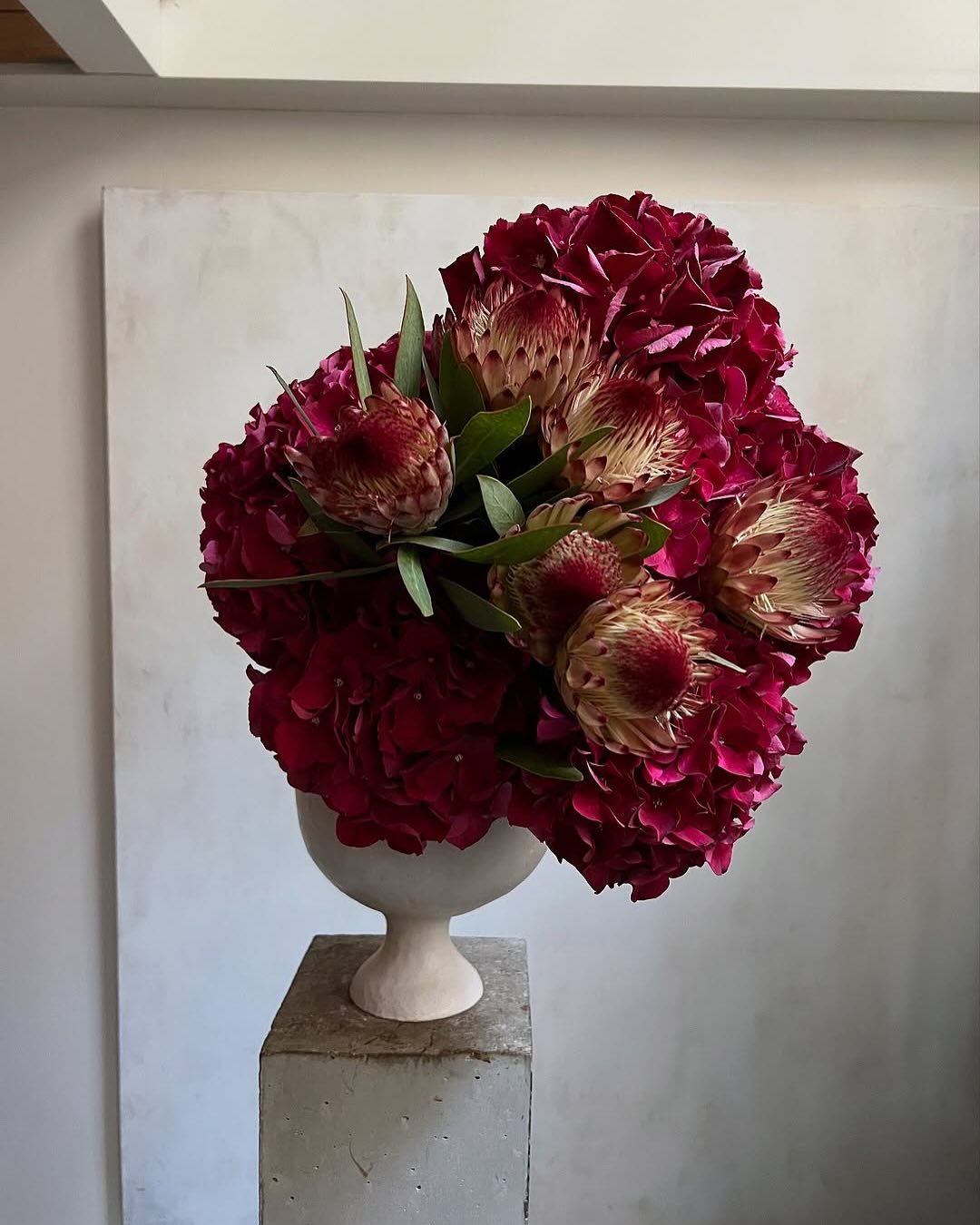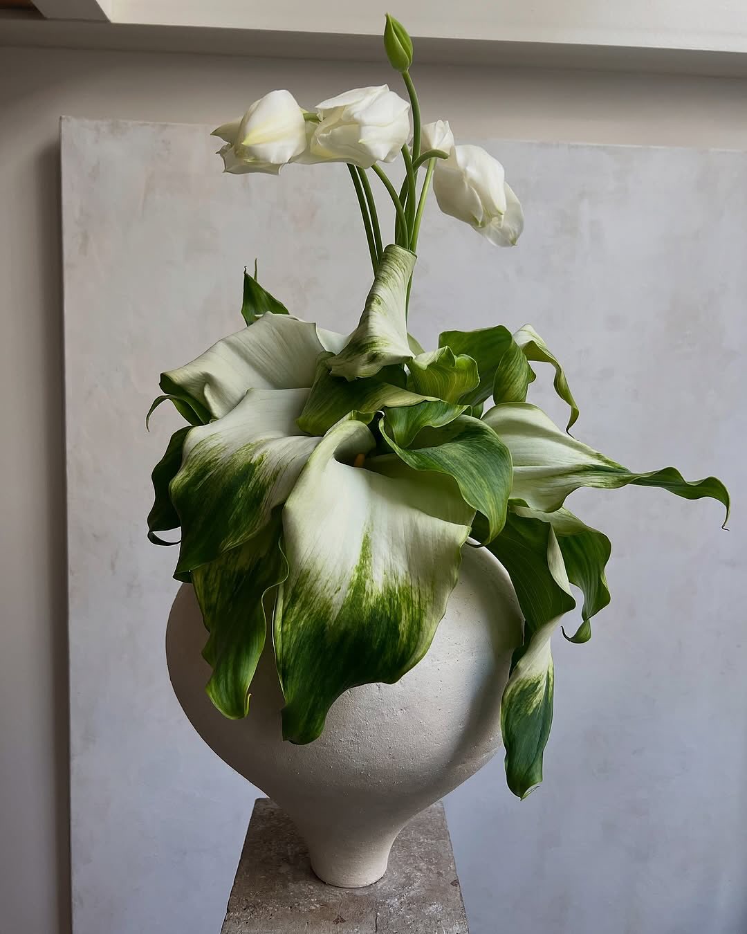 Perched atop unrefined, weighty stone vessels, these living sculptures effortlessly transcend traditional decoration. Their bold, monochromatic palettes and heavy structural tension evoke the same visceral thrill as witnessing a sweeping, architectural gown on a runway. It is an awe-inspiring visual manifesto—fierce, elegant, and undeniably couture.