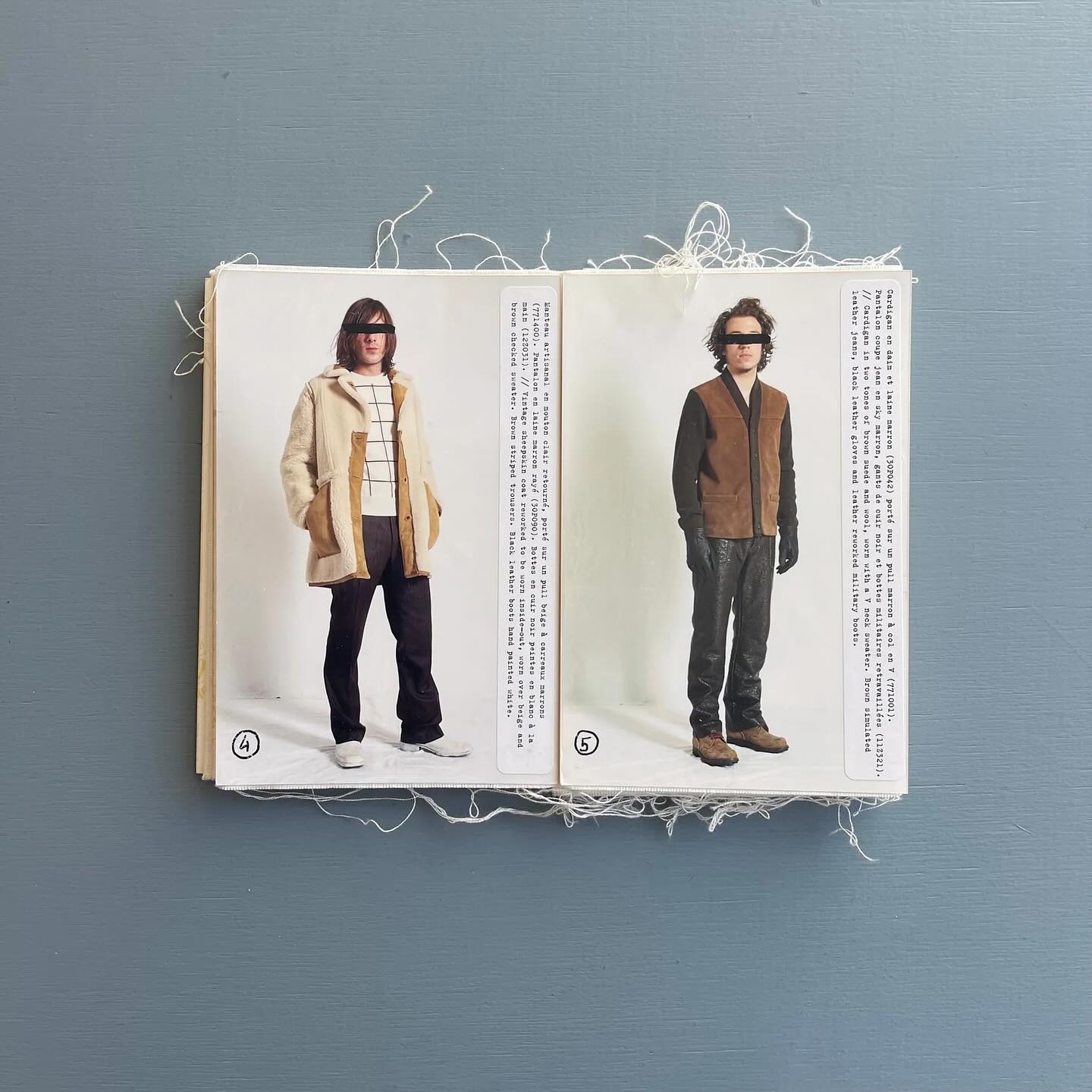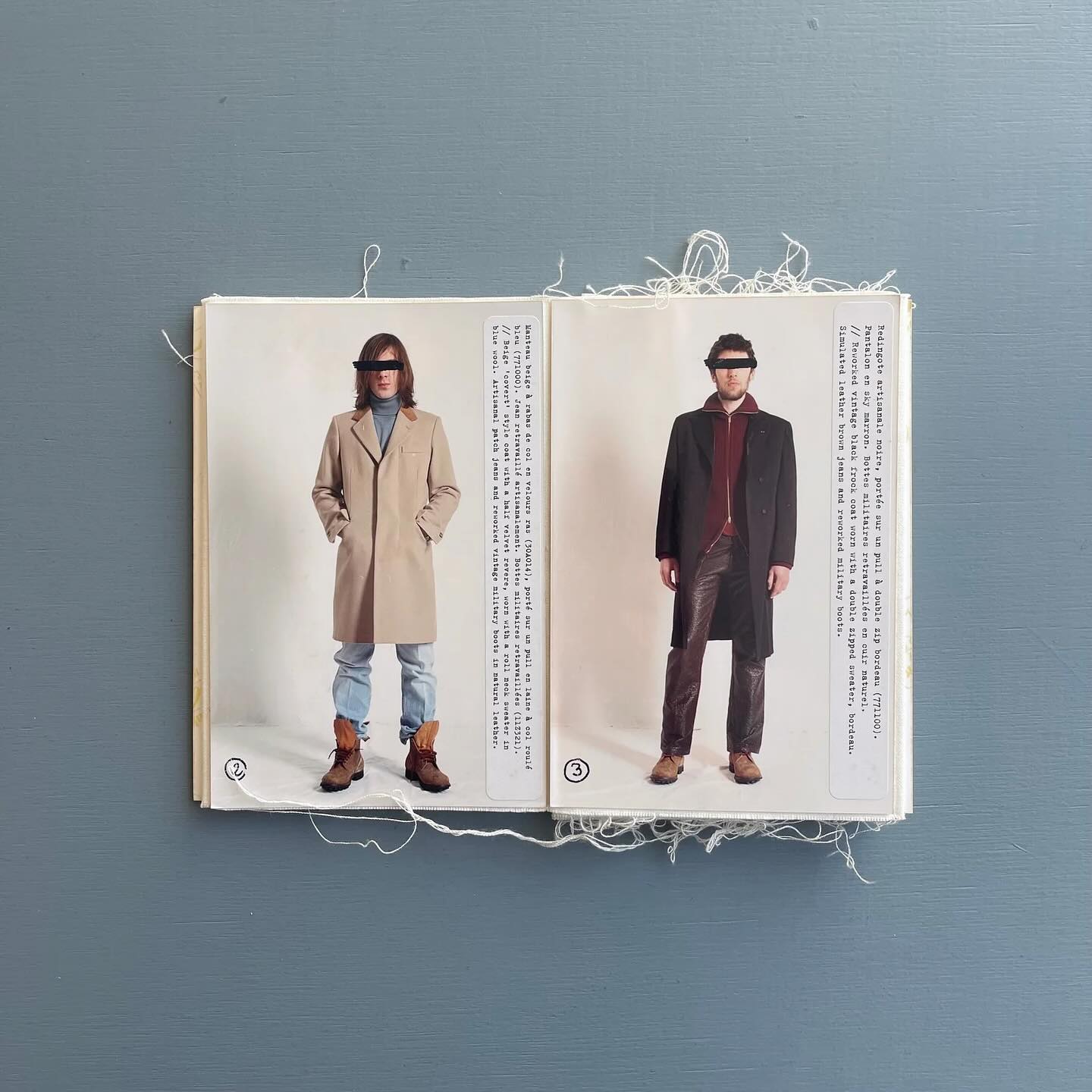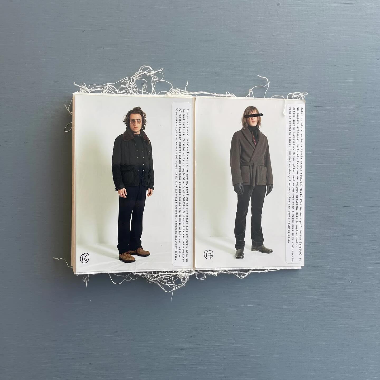 마르지엘라의 룩북은 단순히 옷을 보여주는 카탈로그의 기능을 넘어선다. 거칠게 뜯겨 나간 종이의 단면, 얼기설기 엮인 하얀 실밥, 그리고 아코디언처럼 끝없이 펼쳐지는 비정형의 구조. 이미지 속 이 오브제는 2002-03 가을/겨울 컬렉션(A/H 02-03)이 지향했던 ‘해체’와 ‘재구축’의 미학을 그 물성(Materiality) 자체로 증명하고 있다.